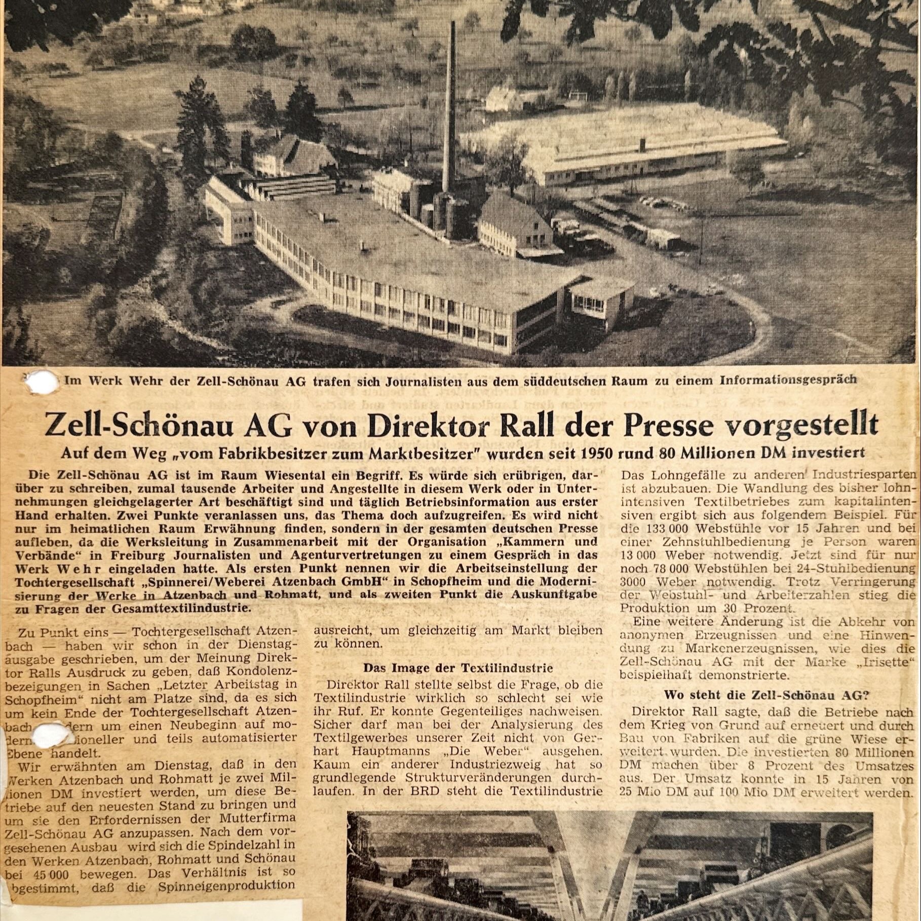 Wiesentäler Textilmuseum, Zell: Digitalisierung und Verzeichnung der Presse aus dem Firmenarchiv der Zell-Schönau AG