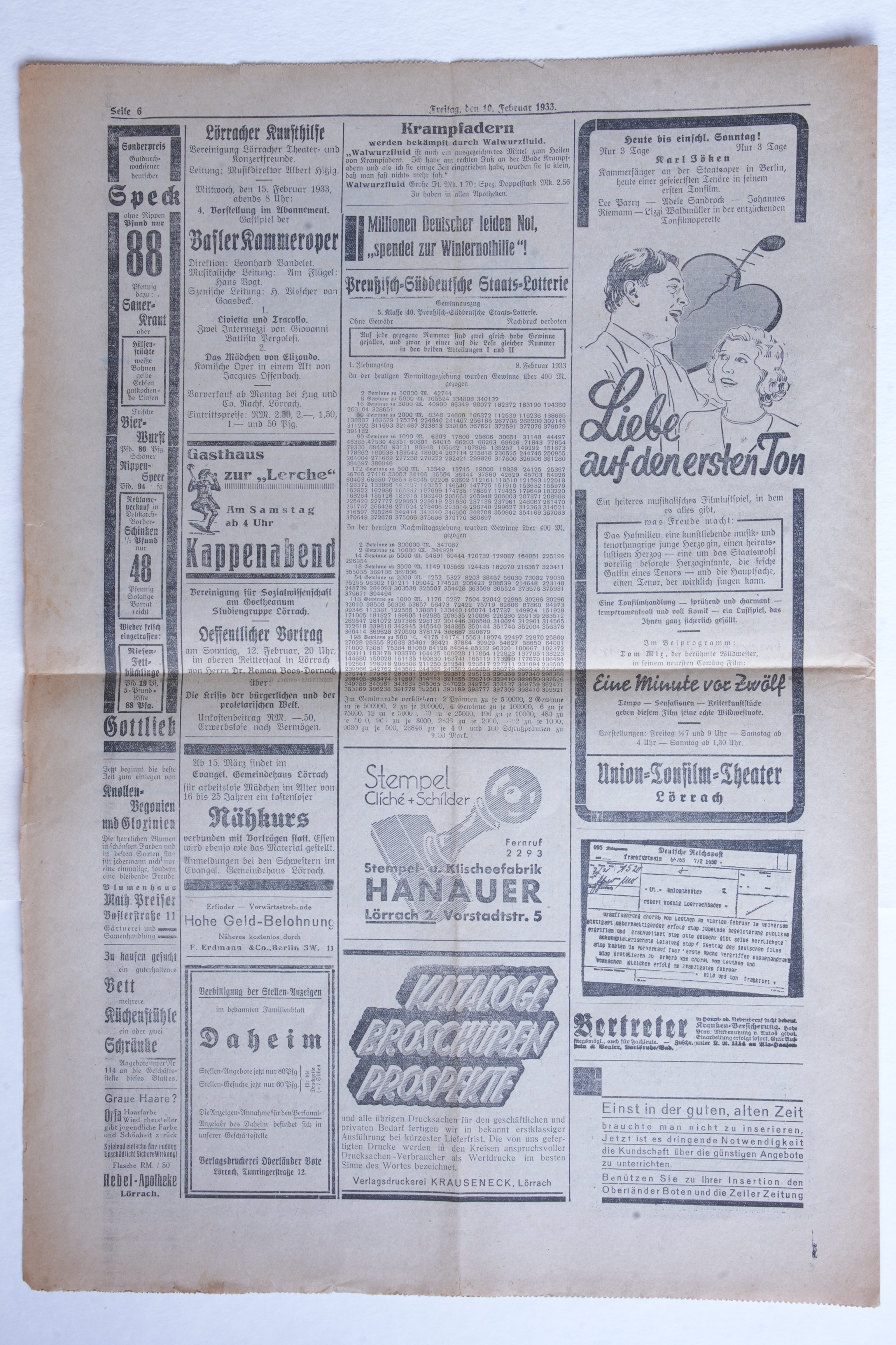 Zeller Zeitung Nr. 35 vom 10. Februar 1933