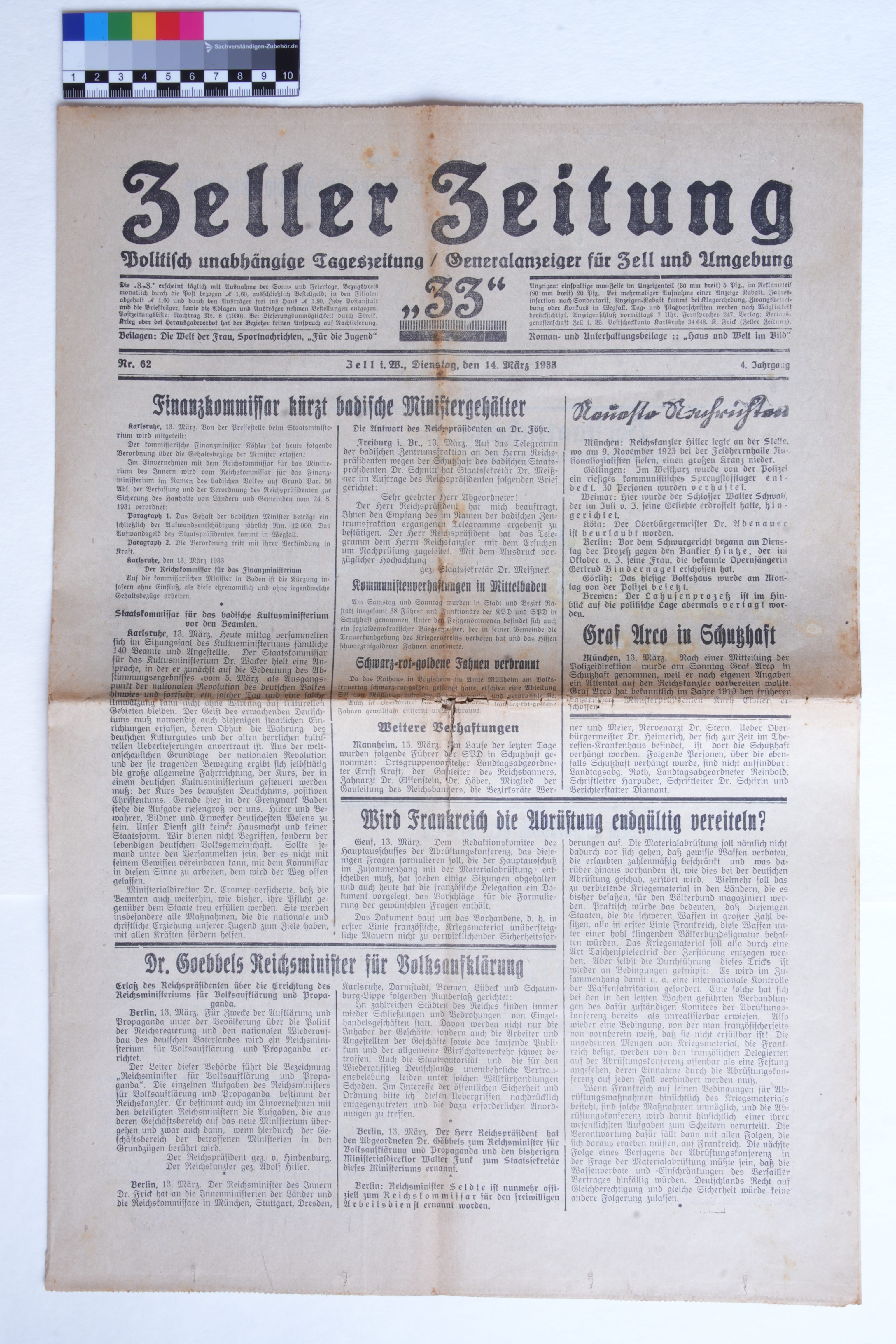 Zeller Zeitung Nr. 62 vom 14. März 1933