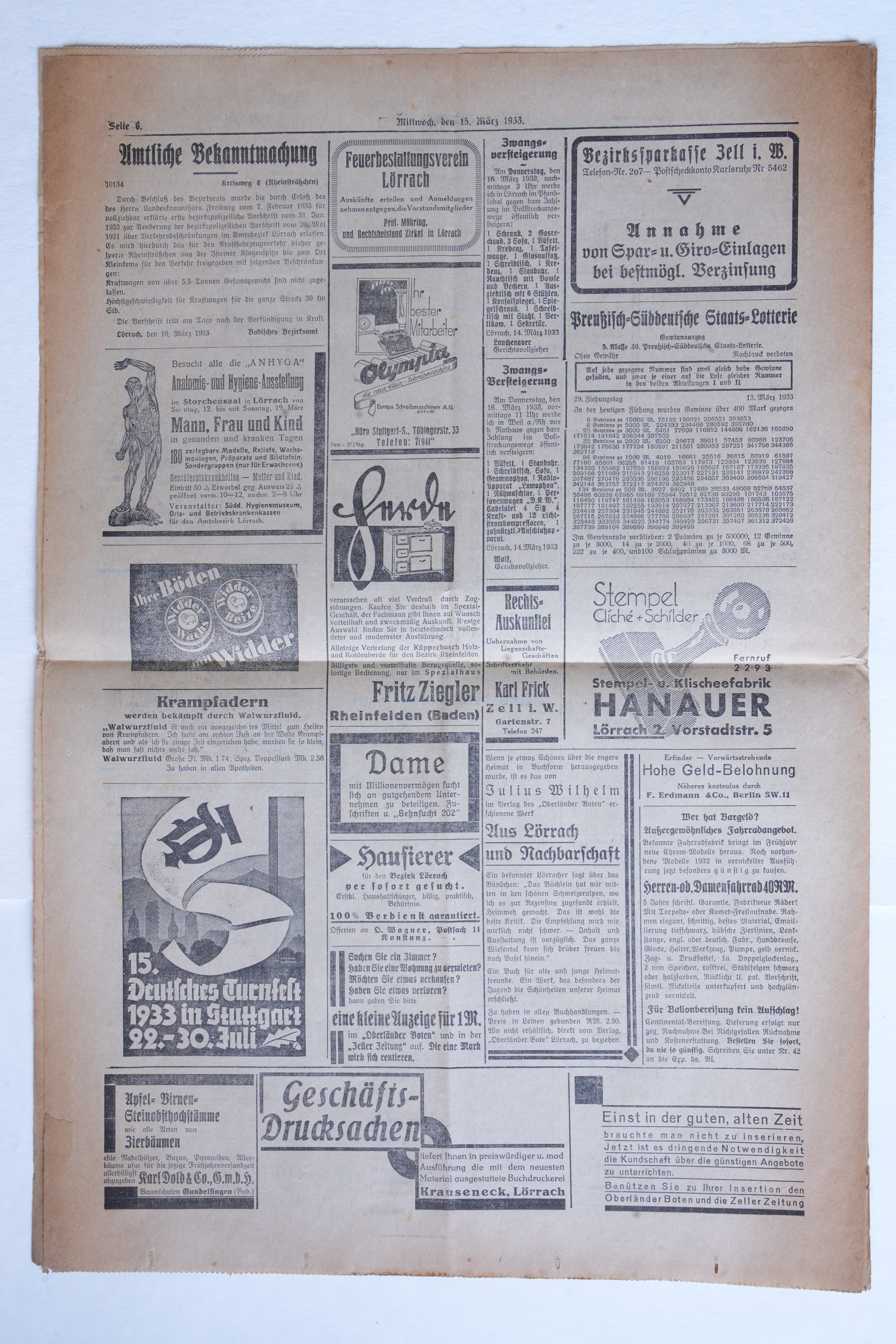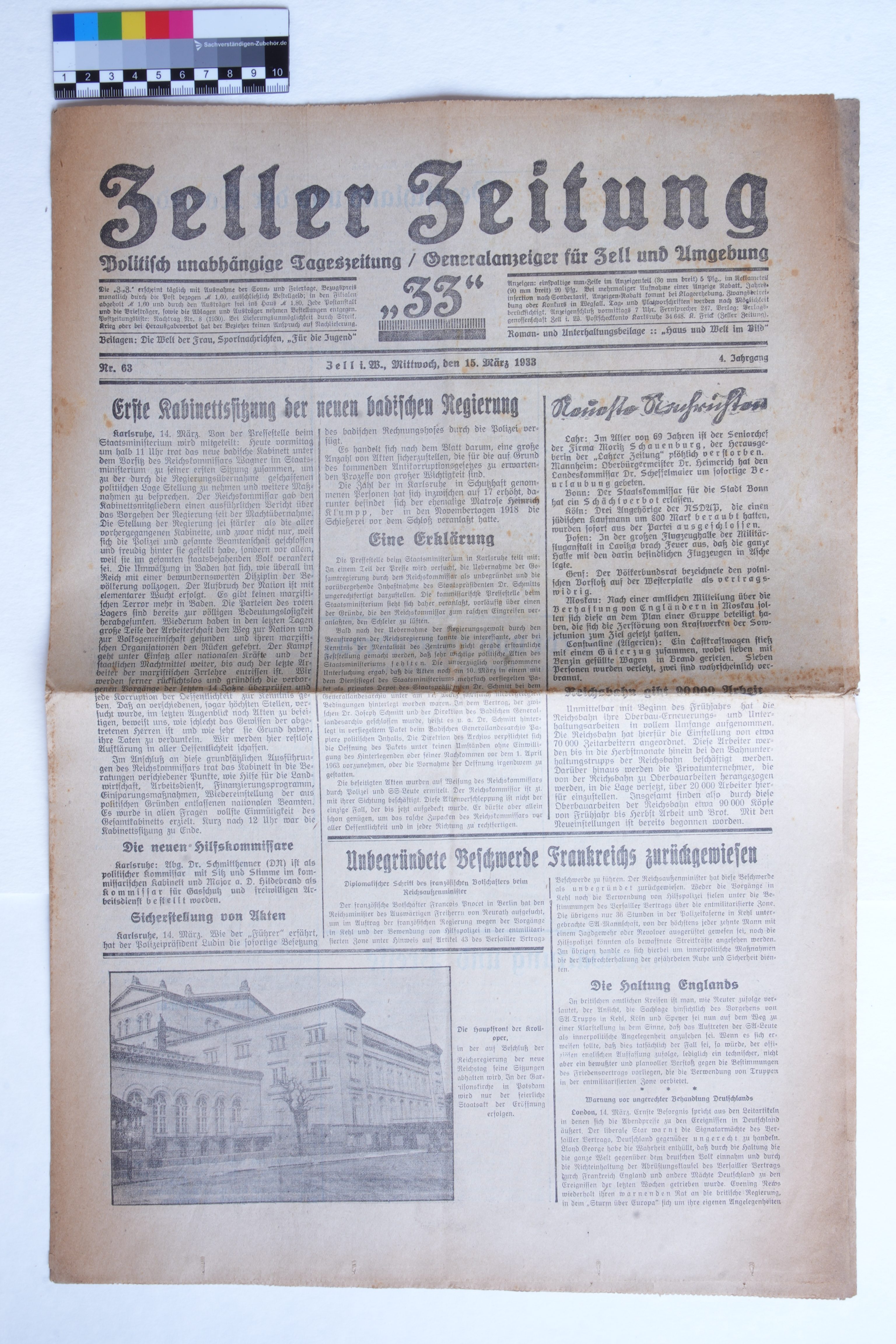 Zeller Zeitung Nr. 63 vom 15. März 1933