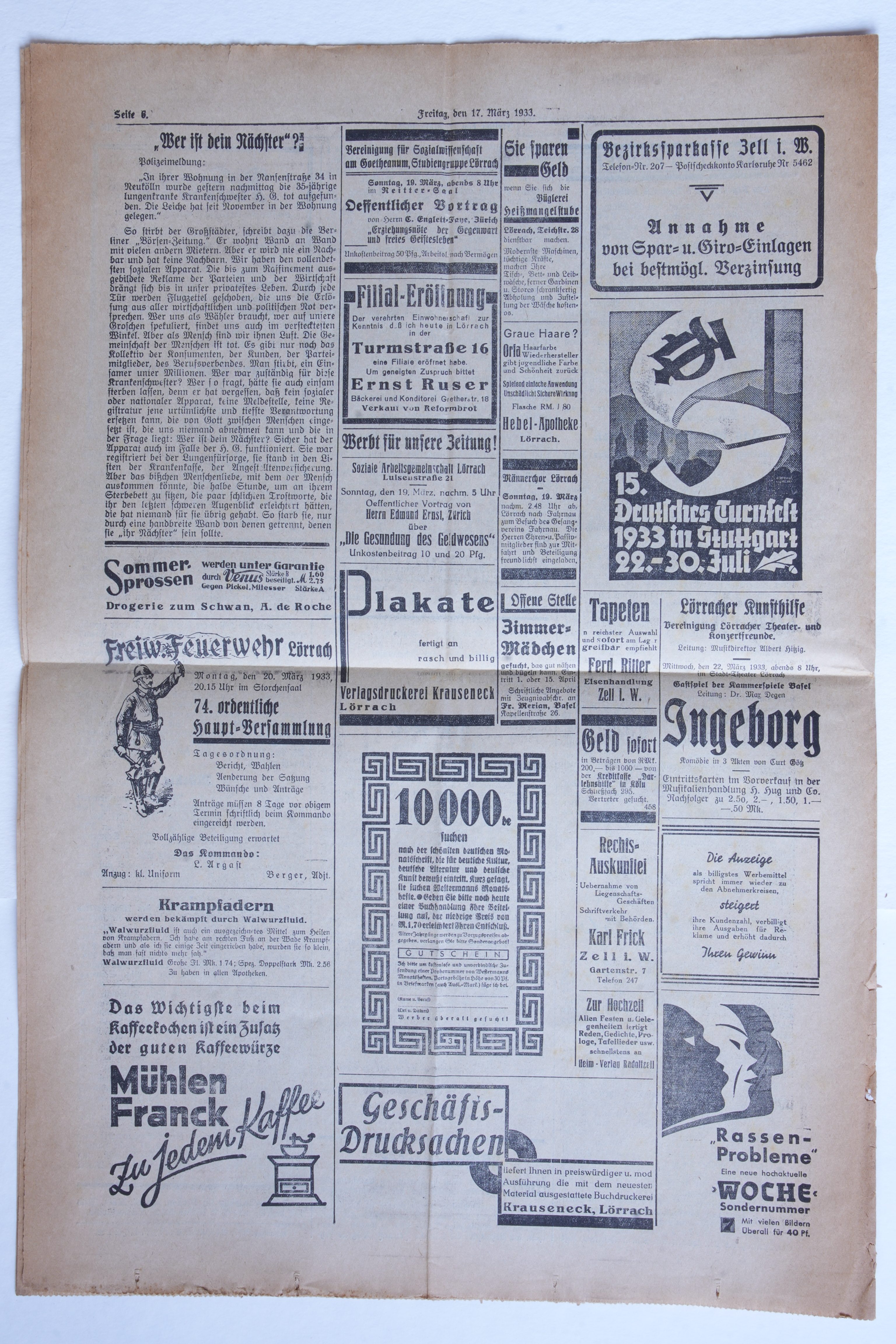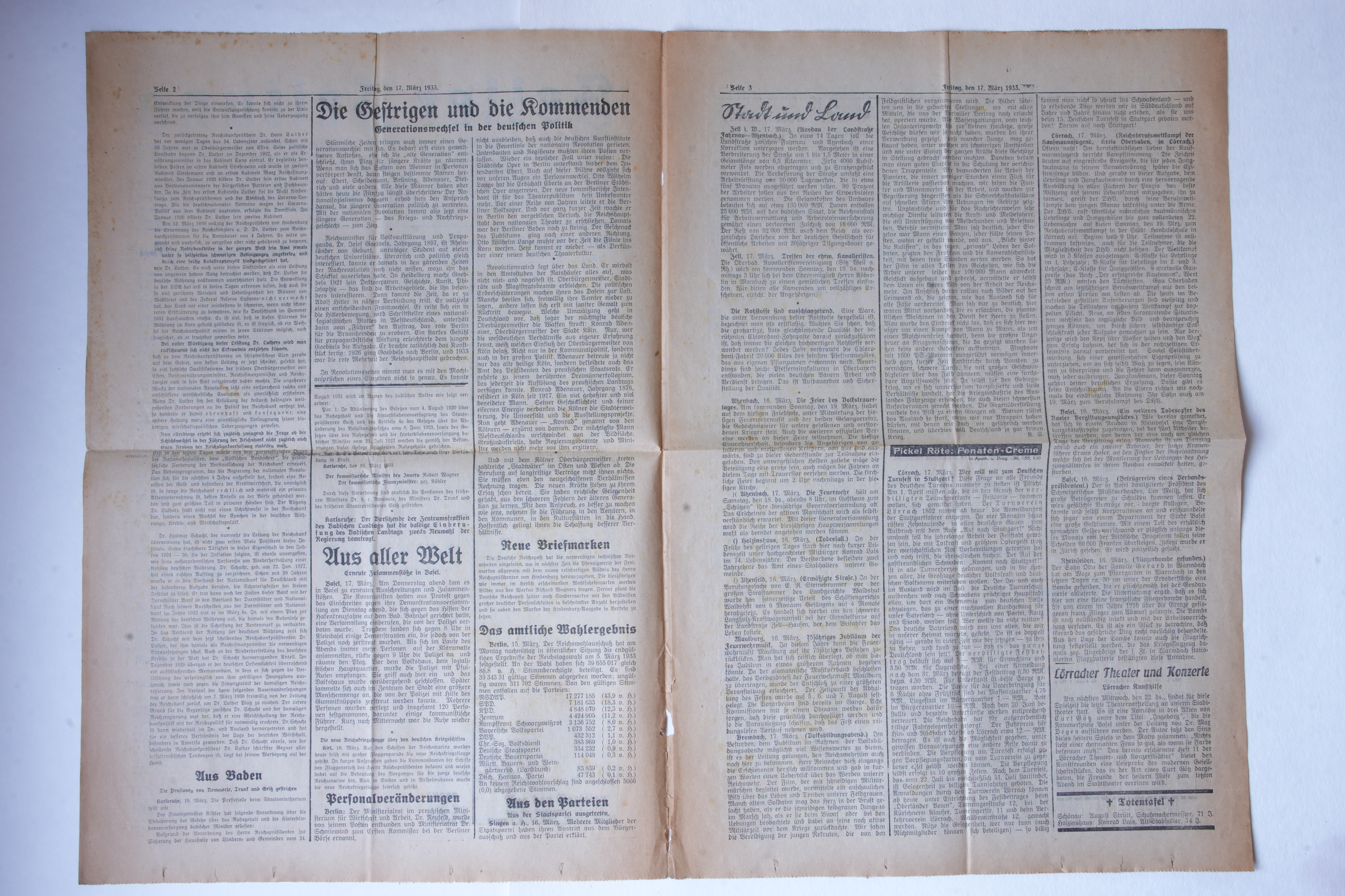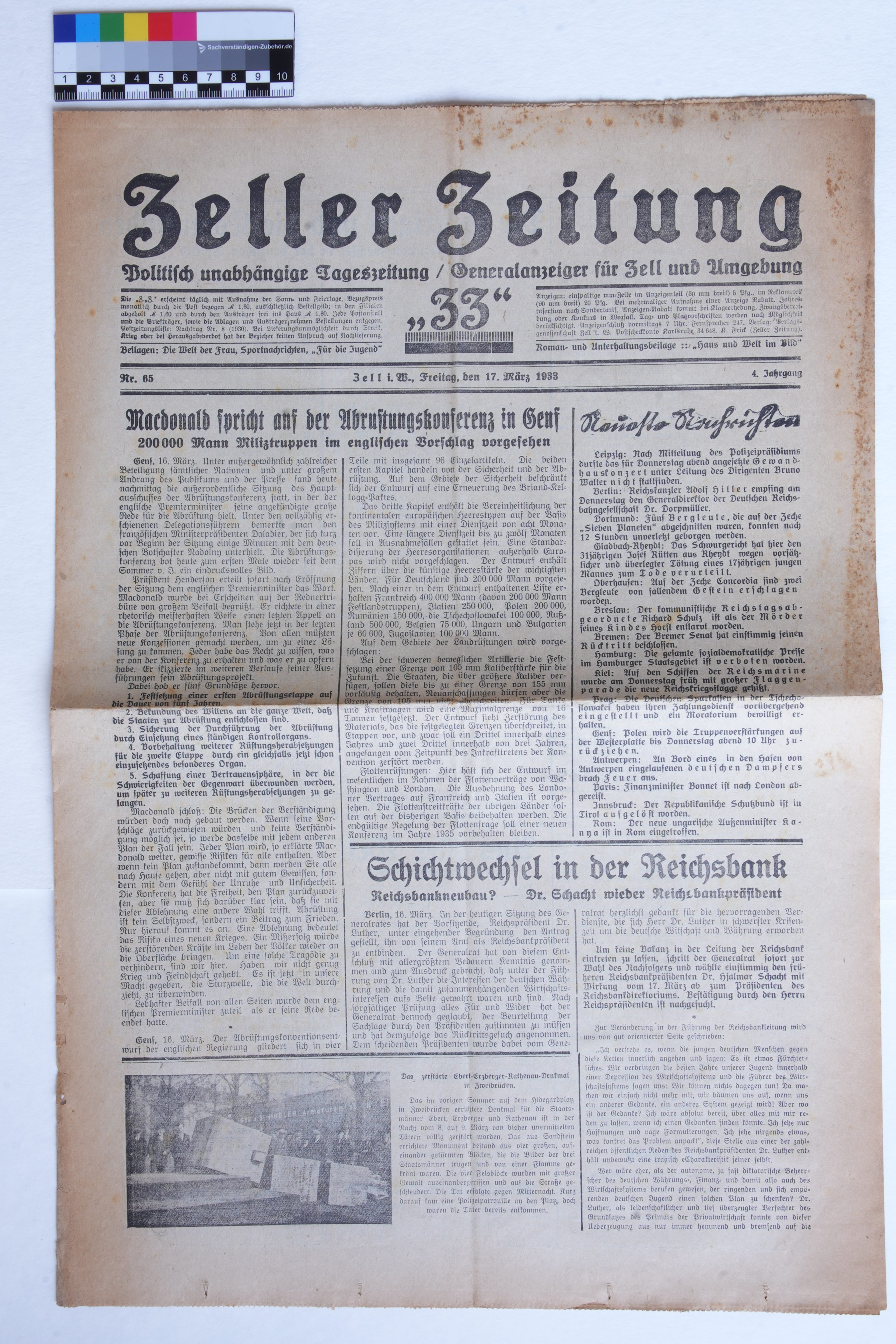 Zeller Zeitung Nr. 65 vom 17. März 1933